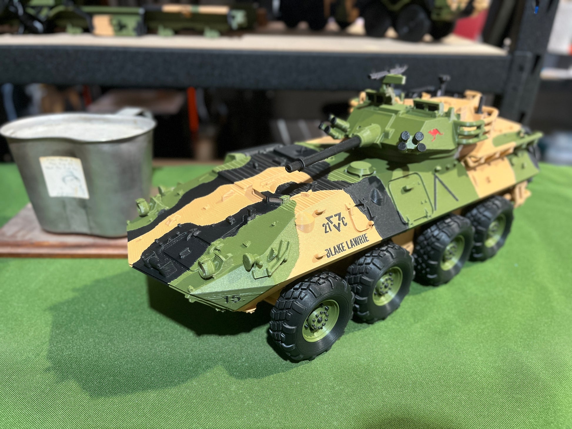 Get your hands on a durable scaled 3D printed model of an Australian Defence Force (ADF) armoured vehicle, crafted with precision for tactical displays and training use. Designed specifically for display purposes, this multi-colour model incorporates vibrant AusCam-inspired colours.
